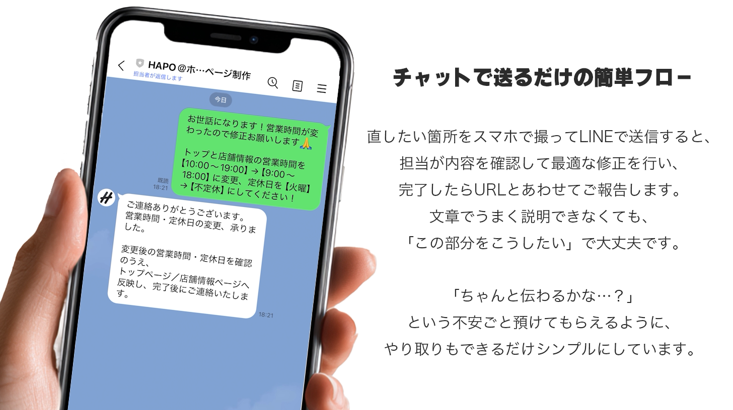 メールやLINEで「ここをこう変えたい」と送るだけでOK。